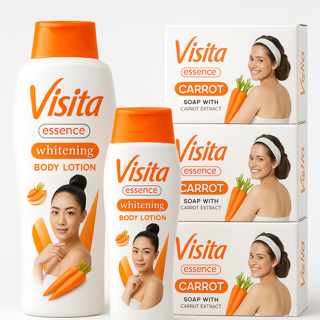 Experience the radiance of smooth, healthy skin with Visita Essence Whitening Carrot Lotion and Soap — your complete skincare duo designed to brighten, nourish, and rejuvenate your complexion.