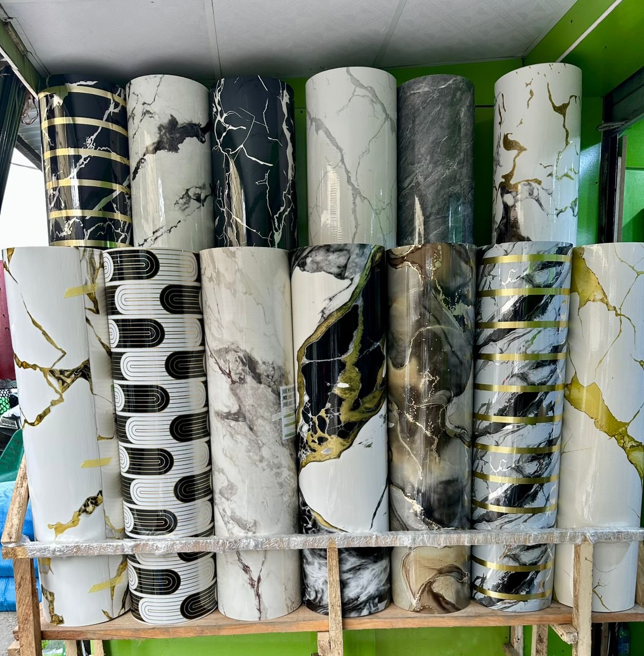 Marble wallpapers available in beautiful designand colours, it is water resistant and comes in 4ft by 9.5ft. We deliver nationwide.