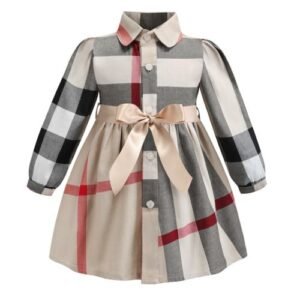 2019 British Style Dress Girl Plaid A-line Long Sleeve Dress